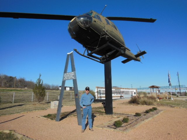 Here I am standing under a UH-1 Huey helicopter at the Mineral Wells, Texas memorial to Vietnam Veterans. I was a crew chief on one of these in 1971 in Vietnam. I didn’t get my helicopter pilot’s license until the 1990s after I was making enough money as an airline pilot to afford it.
