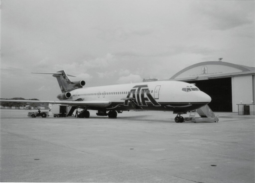 This is a Boeing 727 in American Trans Air vacation colors. This is one of the photos included in my aviation memoir, Behind the Cockpit Door.