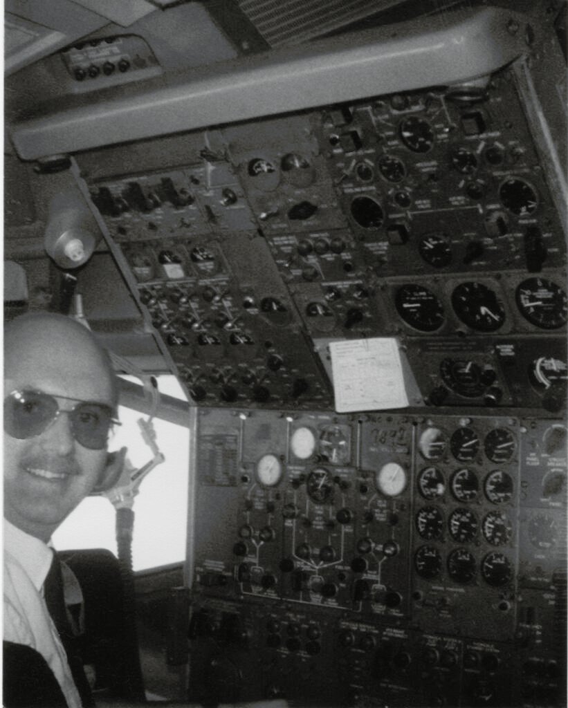 Here I am at the Flight Engineer’s panel on a B-727 in flight in December of 1987. Another photo included in my memoir.